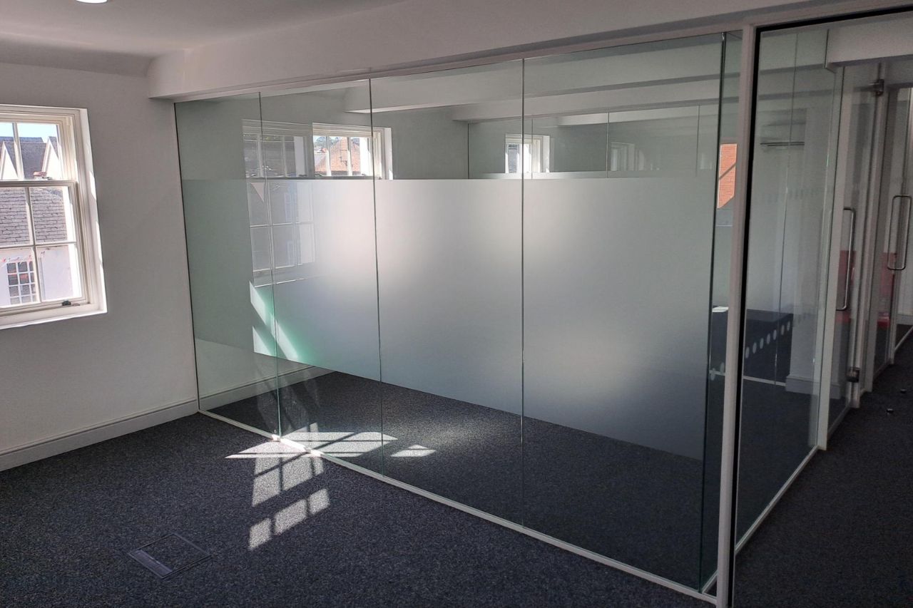 Two private offices and a meeting room with full-height glazed partitions